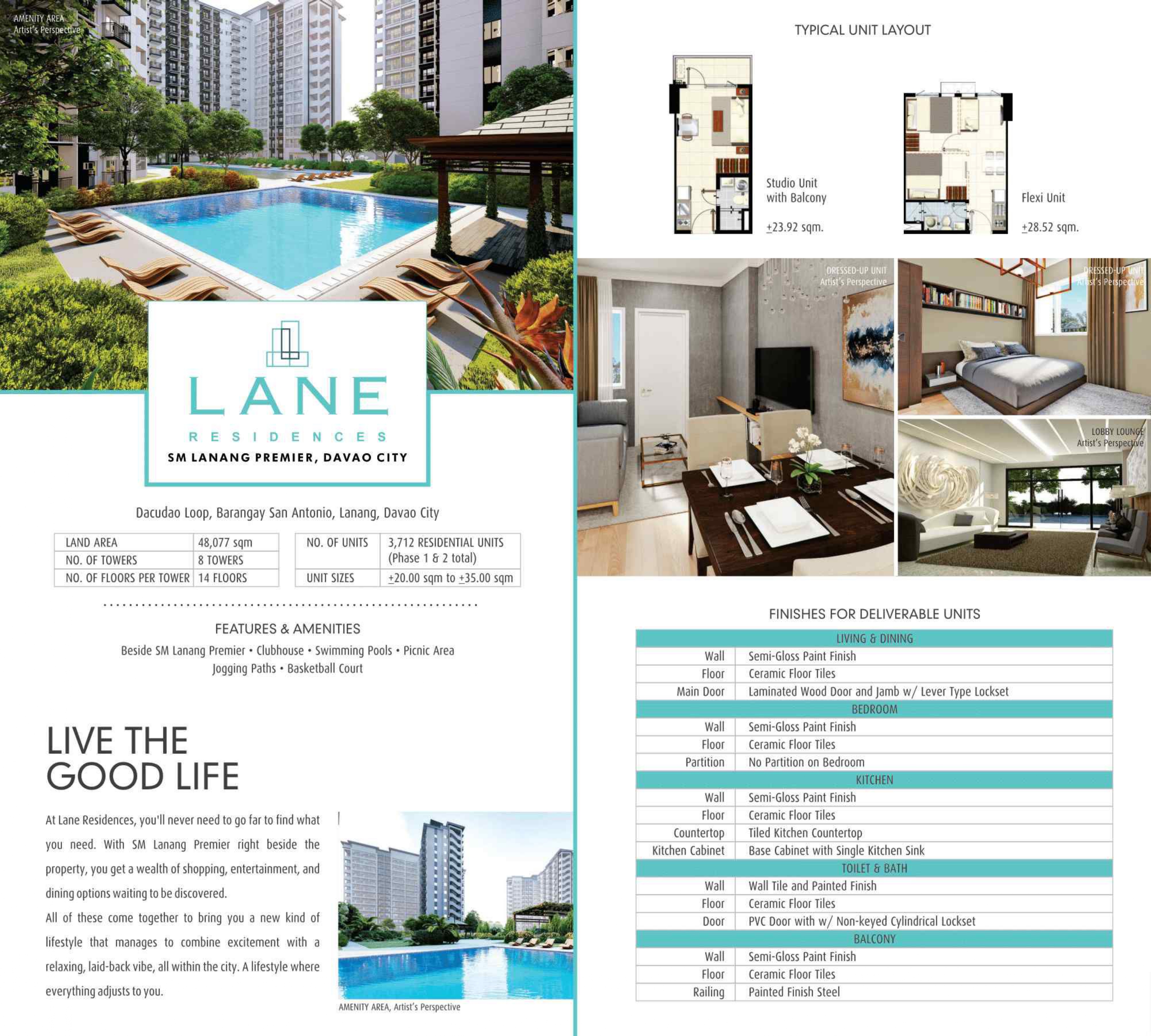 Located in San Antonio Agdao within the SM City Lanang Premier Complex, Lane Residences gives you freedom of movement. The area is a major transportation hub, close to the Davao International Airport and Seaport and many other businesses.