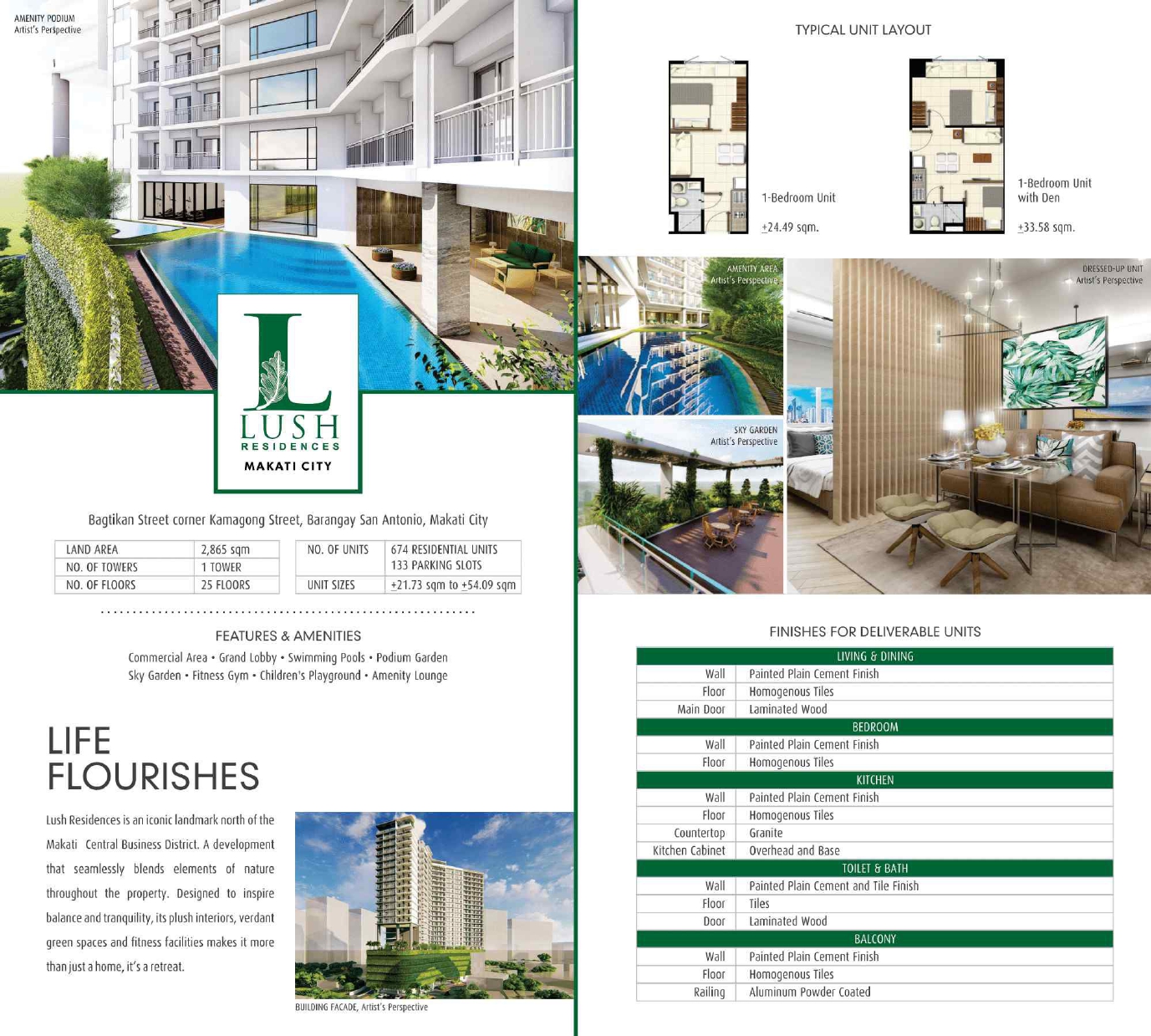 Lush Residences is a condominium in Makati that seamlessly blends elements of nature throughout the property, offering a natural escape from the concrete jungle of the city just north of the Makati Central Business district.